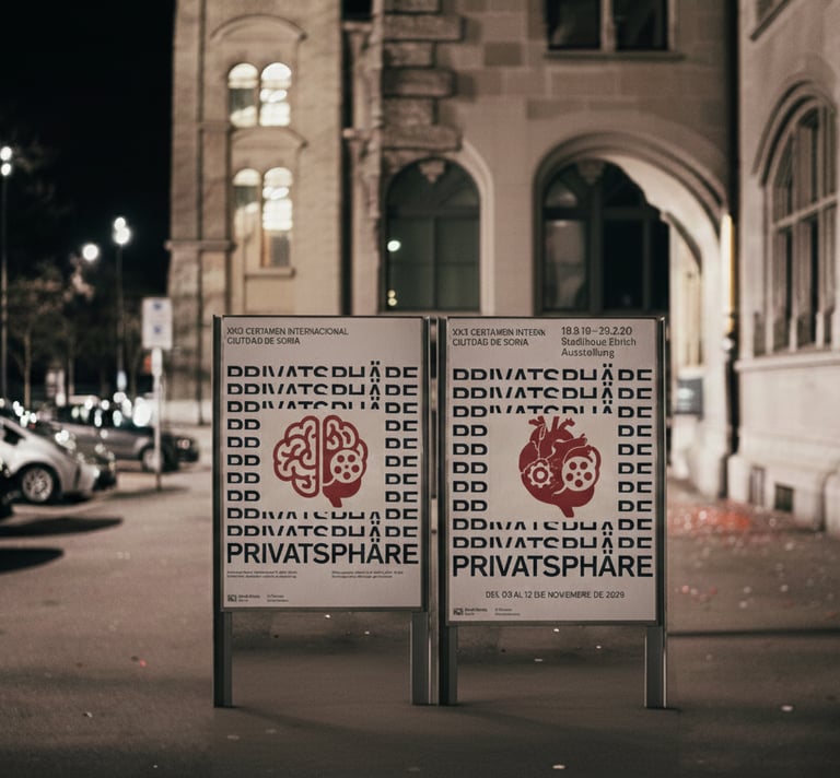 This project examines the tension between public space and digital monitoring. We created a striking visual language that reflects how individuals move through environments increasingly shaped by data collection and surveillance systems. Poster series exploring surveillance,and the shifting boundaries of privacy in modern cities.